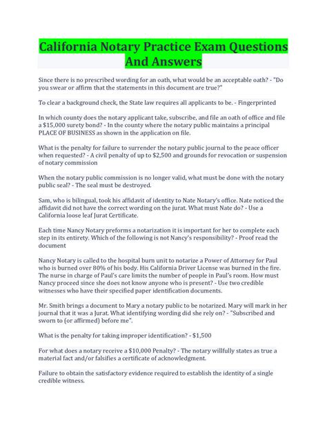 Read Online Sample California Notary Exam Questions Reader Internet Archive